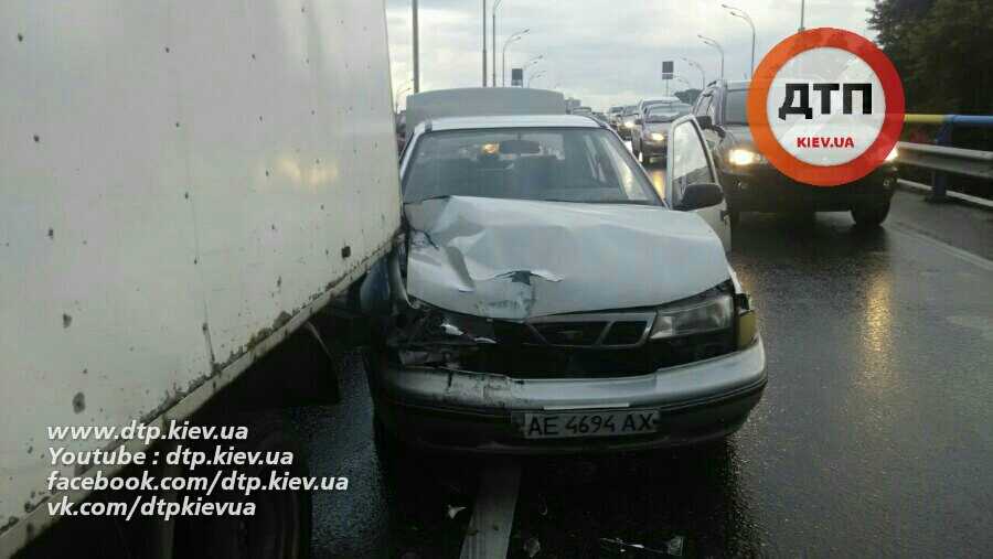 В Киеве из-за дождя на мокрой дороге не справился с управлением водитель автомобиля "Фольксваген". В результате аварии пострадали четыре автомобиля.