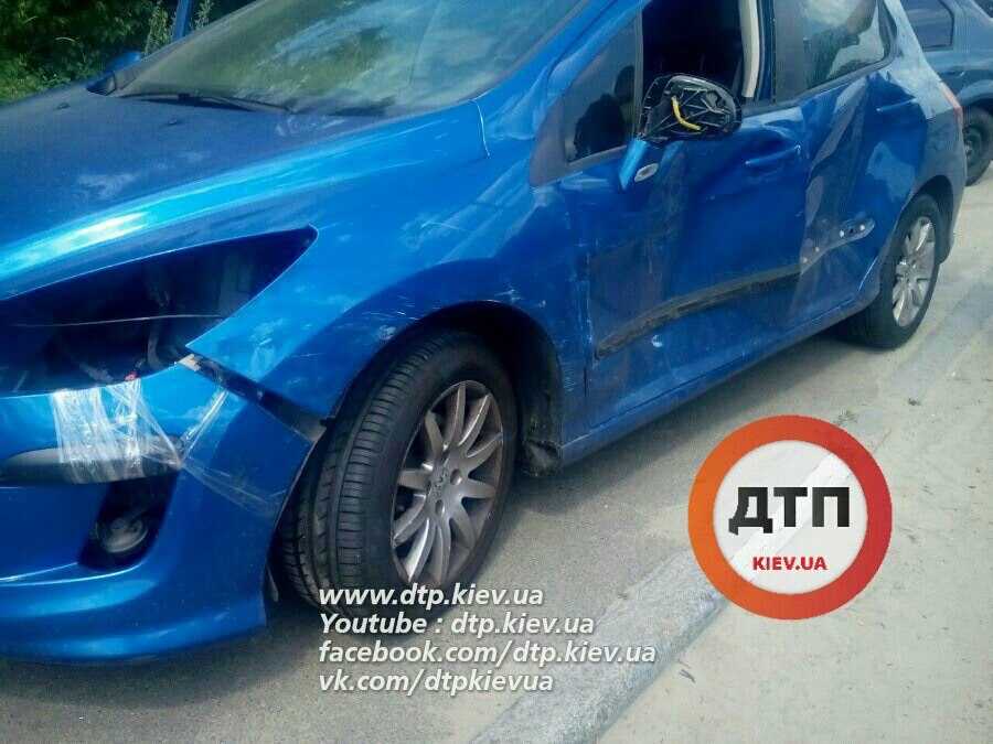 Сегодня, 6 июля, в Киеве на улице Заболотного произошло ДТП. Столкнулся автомобиль "Пежо" и фура.