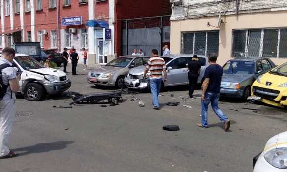 В Киеве произошло масштабное ДТП прямо у отделения полиции. В припаркованные авто влетел автомобиль "Тойота", разбив 9 машин.