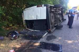 Микроавтобус Volkswagen перевернулся примерно в 07:20 в районе Мангуша.