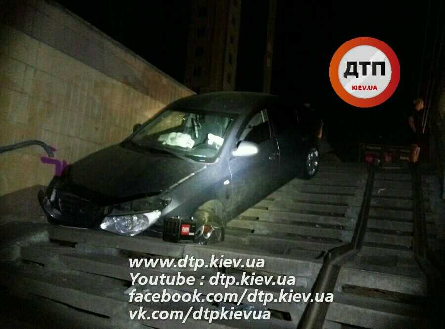 Пьяное ДТП в Киеве на Победы: Хюндай разбился о Фольксваген и улетел в подземный переход. ФОТО