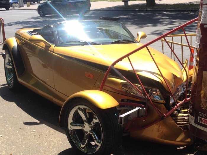 Вчера, 17 июля, в Одессе на проспекте Шевченко кабриолет в стиле «хот-род» Chrysler Prowler снес ограждение и врезался в столб.