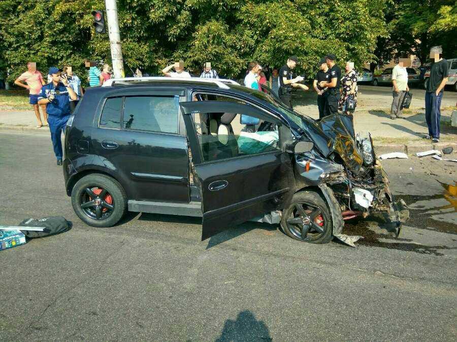 В Кировограде водитель легкового автомобиля не справился с управлением и совершил столкновение с маршрутным такси. Пострадали два пассажира маршрутки и сам виновник аварии.