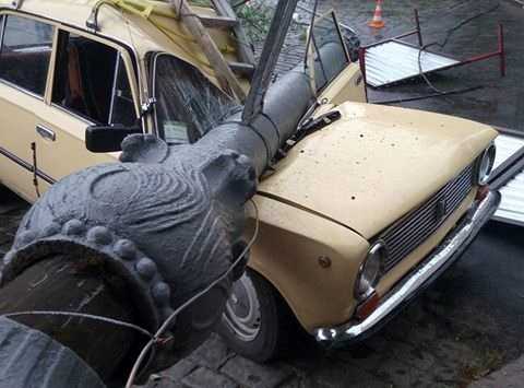 В Харькове сегодня, 29 июля, около 15:30 на углу площади Свободы произошло ЧП. На автомобиль "ВАЗ" рухнул столб освещения. Транспортное средство серьезно пострадало, водителю повезло больше. Власти обещали помочь в лечении мужчины.
