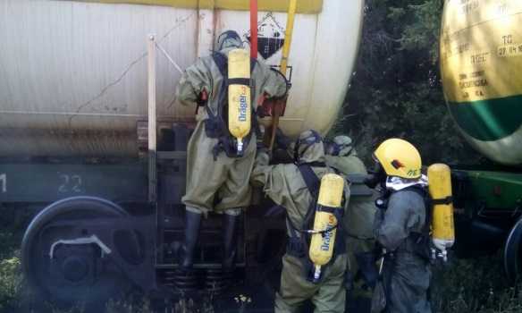 Уже в 09:20 бойцы ГСЧС наложили бандаж и ликвидировали подтекание. Цистерну отбуксировали на запасную колею.