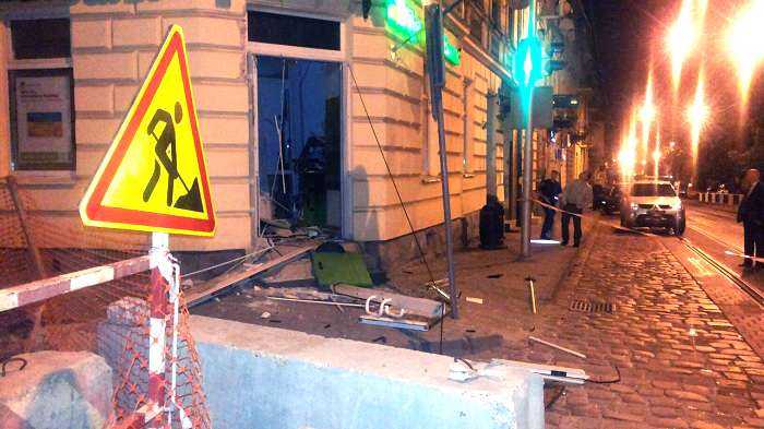 Львовяне в соцсетях сообщили о ночном взрыве в городе. Оказалось, что причиной были действия двух злоумышленников, которые взорвали банкомат «ПриватБанка» в помещении отделения финансового учреждения, расположенного на улице Генерала Чупринки, 36.