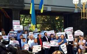 В акции участвуют активисты, правозащитники и депутаты Верховной Рады Украины.