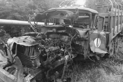 “Так выглядит трудяга ЗИЛ-131 после наезда на минный шлагбаум. Повезло, что сработала только одна ТМ-62М, иначе наш зилок разлетелся бы по всей Авдеевке. Разминировали пол дня, чтобы снять его с места взрыва”, – пишет Кулик.