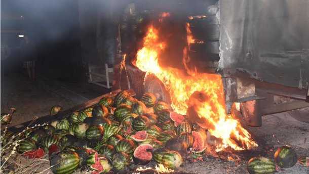 "Интересный и напряженный день. С утра объездили всю границу с Крымом, планируя мероприятия по усилению обороны, а возвращаясь ночью домой заметили на трассе у села Чернявка Каховского района фуру, которая загорелась, и потушили ее. На помощь пришли другие водители, которые останавливались и подключались к работе, потому что фуру пришлось тушить... арбузами, которые были под тентом, ведь огнетушители быстро кончились", – отметил он.