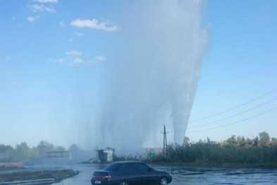 Сегодня около 13:00 на блокпосту на автодороге «Киев - Довжанский» неподалеку от Славянска произошел сильный прорыв водопровода. Пятнадцатиметровый фонтан питьевой воды частично перекрыл движение автотранспорта.