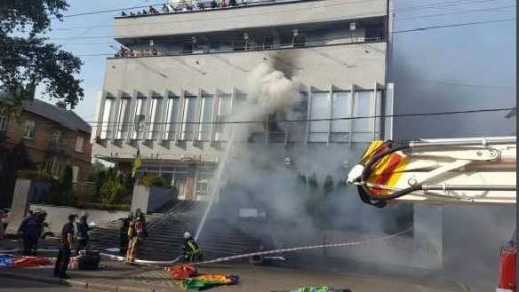 Оцевидцы пожара в здании "Интера" сообщили, что работникам телеканала потребовалась помощь медиков. Некоторых из здания, пострадавшего от поджога, выносили на носилках.