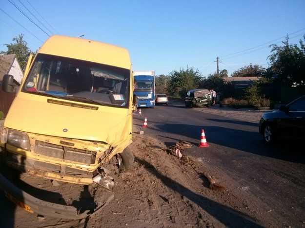 В Днепре автомобиль Hyundai врезался в маршрутку.