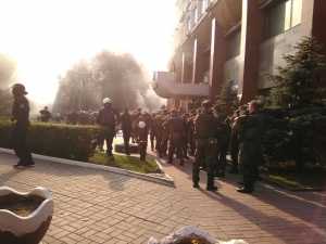 После того как полиция стала выводить из помещения первых работников строительной компании, участники протеста стали забрасывать полицию взрывпакетами и дымовыми шашками. Кто-то из противников стройки пустил в полицейских слезоточивый газ. Несмотря на то что блокада "Киевгорстроя" снята, офис работу не возобновил.