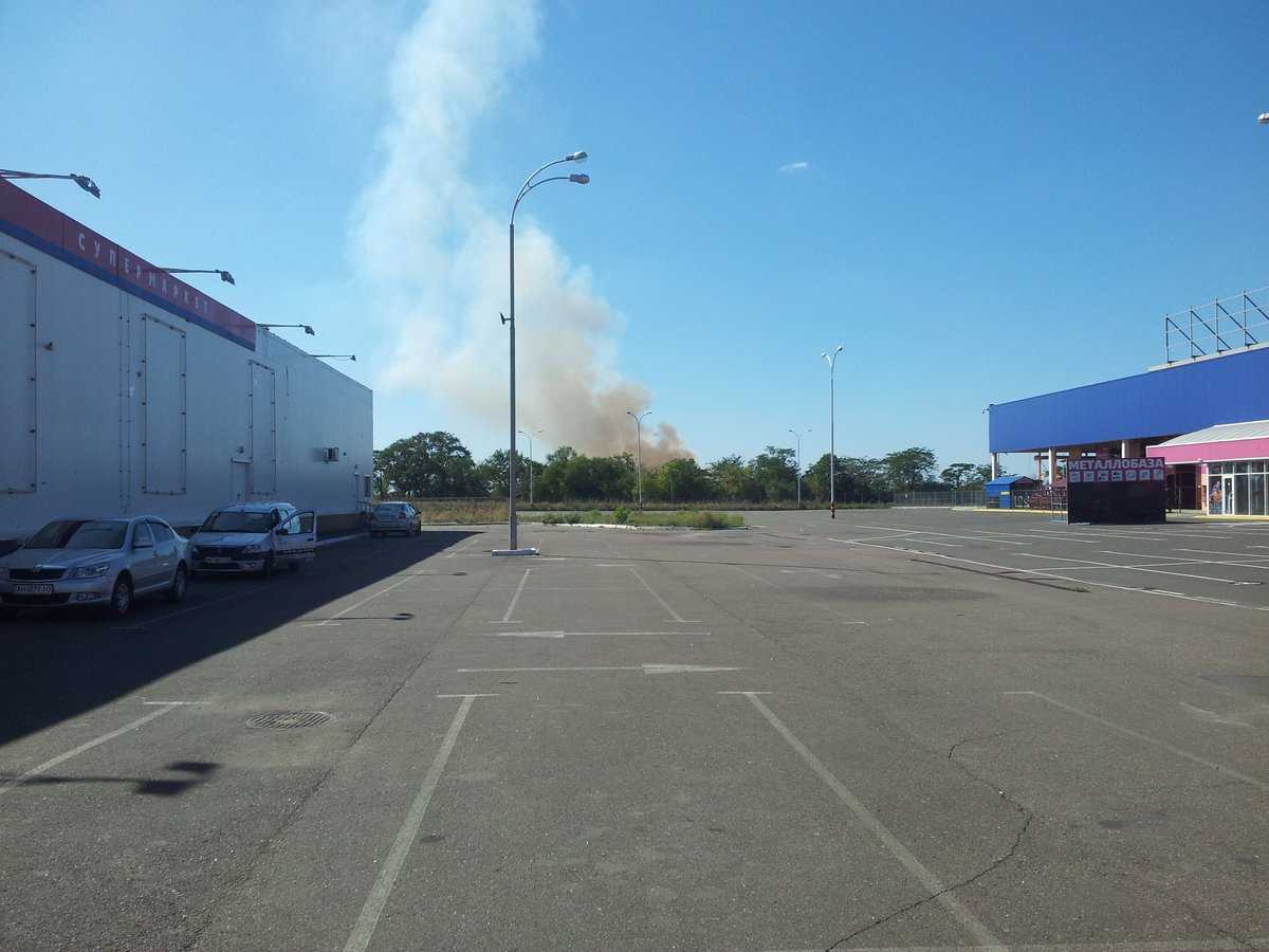 По словам очевидцев, дым исходит из района ул. Новосельского. Недалеко от этого места находится несколько частных домов, захваченных боевиками. При этом жители поселка отмечают, что дым не похож на дым горящей травы, а звуков взрывов в городе слышно не было.