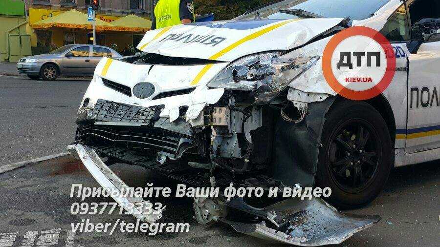 В сети появилась видеозапись последствий резонансного ДТП в столице, участниками которого стали патрульный автомобиль "Toyota Prius" и такси "Chevrolet Lacetti". Авария произошла во вторник, 13 сентября, на улице Саксаганского в Киеве. Четыре человека пострадали.