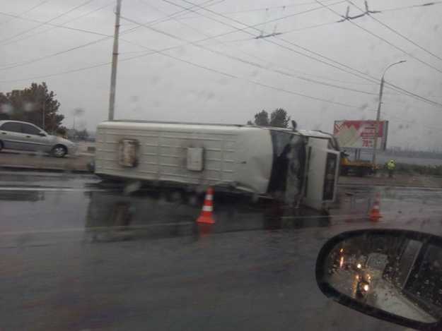 Сегодня утром, 20-го сентября, в Запорожье перевернулась маршрутка. В результате аварии пострадали 2 человека.