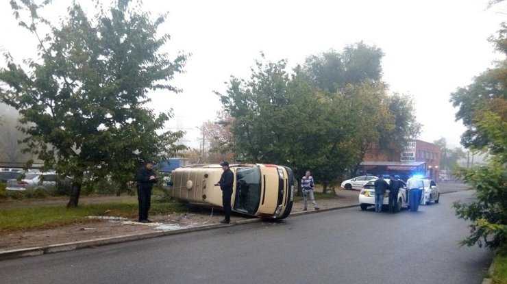 Прибывшие на место патрульные полицейские увидели, что автомобиль съехал с проезжей части, перевернулся и лежит на тротуаре.