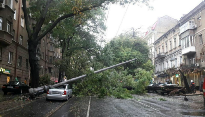 Инцидент произошел около 14:00 в субботу, 8 октября. Старое дерево упало на металлический столб, который обрушился на автомобили. В результате улица оказалась перекрытой, поэтому в КП Одесгорэлектротранс сообщили о курсирования троллейбусов № 9 и 10 только до ж\д вокзала.