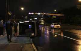Поздно ночью в субботу, 8 октября, в Запорожье на дамбе между остановками "пл. Пушкина" и "ул. Гагарина" на ходу перевернулась маршрутка №88.