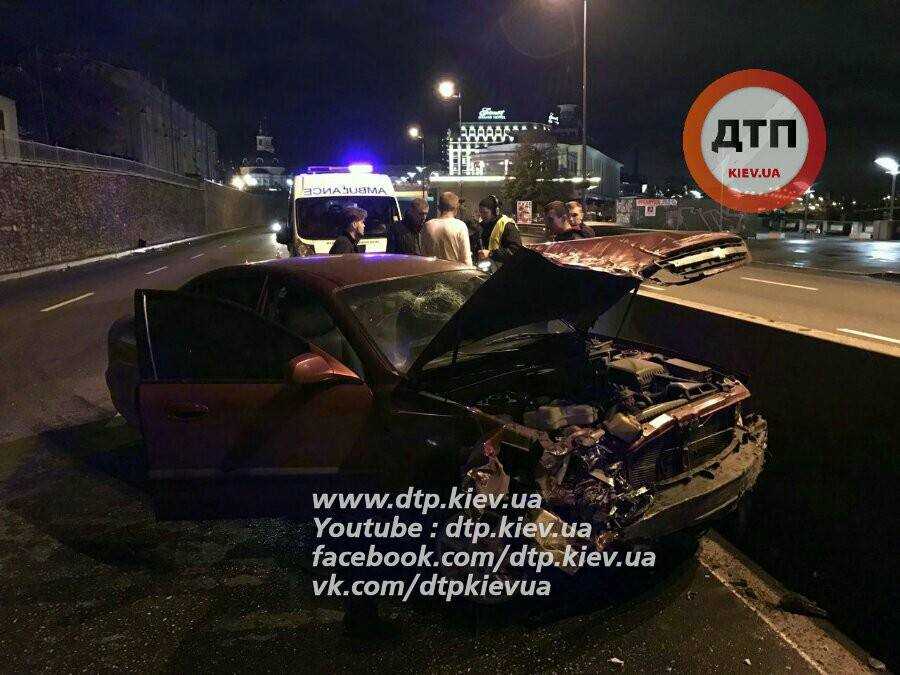 "Ночное пьяное дтп в Киеве на Набережной: пьяная компания из Житомира врезалась в отбойник. В салоне 6 чел, парни и одна девушка, которая вылетела в лобовое стекло, пострадала, зчмт, сгм. У водителя 1.05 промилле" - сказано в сообщении (орфография и пунктуация сохранены).