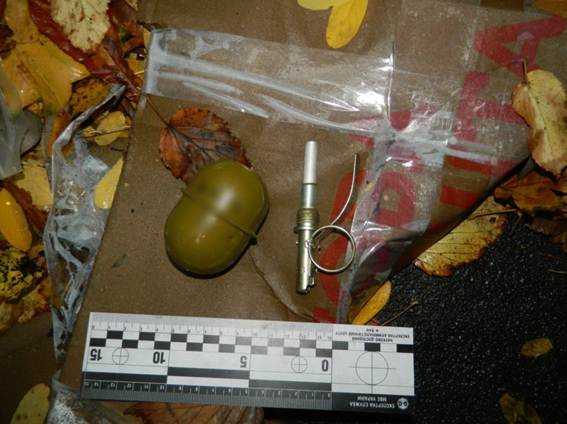 В Киеве недалеко от детской площадки случайно обнаружили предмет, похожий на боевую гранату. Найденные предметы отправили для проведения экспертизы. Полиция разыскивает хозяина опасного предмета.