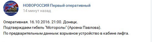 16 октября появилось сообщение о смерти боевика "ДНР" Моторолы.