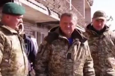 «Мирон Маркевич гостит у пограничников на передовой. Сегодня, во время пребывания на Марьинке, украинский тренер фактически попал под обстрел российско-террористических войск.