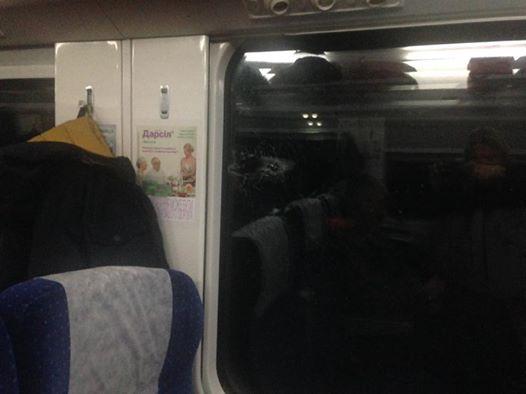 Ранее волонтер Ольга Решетилова написала в Facebook, что в 7 вагоне поезда треснуло окно, и предположила: "По вагону стреляли с улицы".