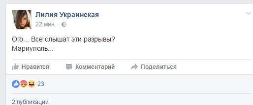 "Ого... Все слышат эти разрывы?Мариуполь..." - написала в ФБ украинский волонтер Лилия Болбат (Лилия Украинская) отметив, что находится на Восточном микрорайоне.