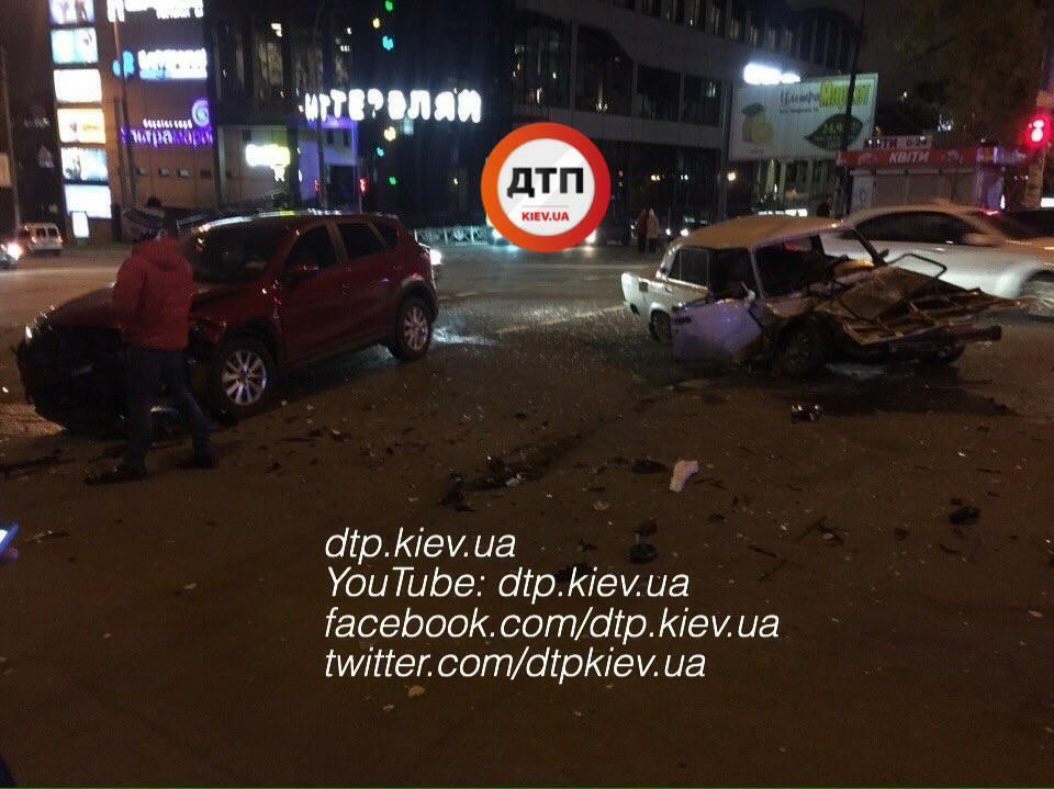 В Киеве произошло ночное ДТП. В результате аварии пострадали двое взрослых и двое детей.