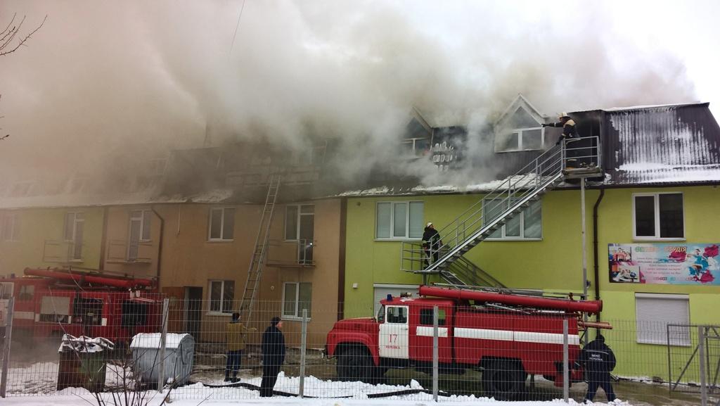 Вогнем знищено 100м2 покрівлі та речі домашнього вжитку в квартирах на третьому поверсі. В результаті злагоджених та оперативних дій рятувальників врятовано житлові приміщення на нижчерозташованих поверхах.