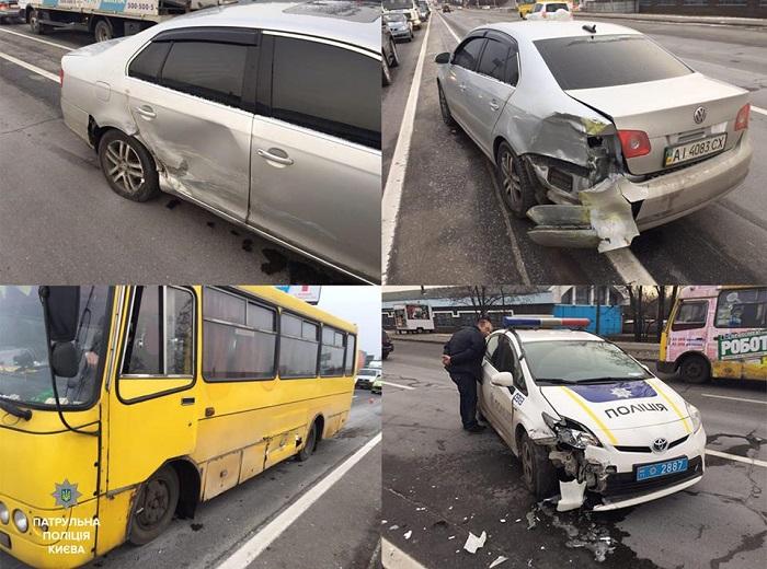 Порушника ПДР на "Volkswagen Jetta" патрульні поліцейські зупинили 29 листопада, близько 8-ї години ранку, на Броварському проспекті. Після передачі патрульним документів для перевірки, водій натиснув газ. Розпочалося переслідування, на вимогу поліцейських авто не зупинялось.