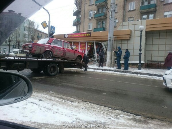 Автомобиль был эвакуирован с места ДТП, новых подробностей о дорожном инциденте в Луганске пока нет. От удара была полностью разрушена наружная витрина магазина.