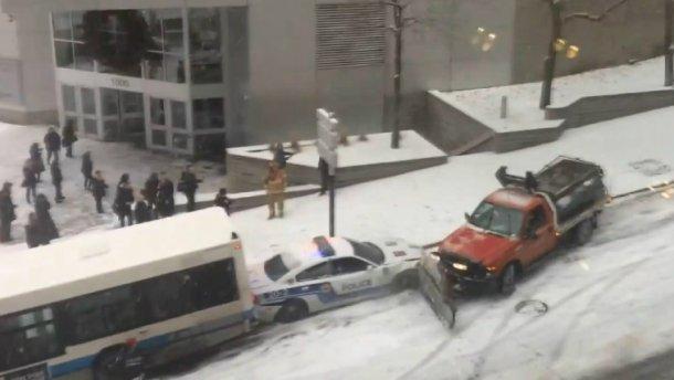 В центре канадского Монреаля из-за скользкой дороги столкнулись с десяток машин.