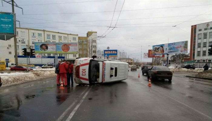 В Одессе случилась авария, в результате которой перевернулся автомобиль "скорой помощи".