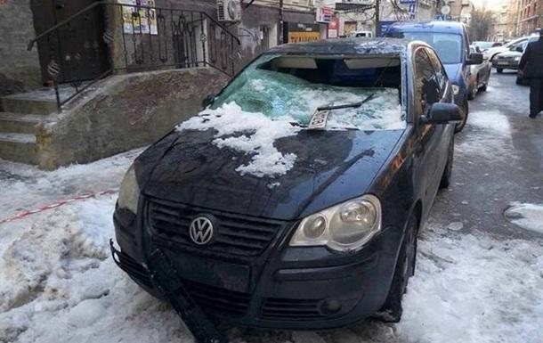 В Киеве сегодня, 16 января, на улице Гончара с крыши упала глыба льда и серьезно повредила два авто.