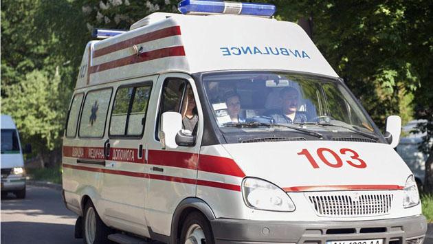 Снаряд упал рядом с проезжающей машиной скорой помощи. Осколочные ранения получили три человека, в том числе водитель и фельдшер.