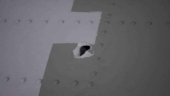 Когда самолет приземлился, техработники при осмотре обнаружили пулевое отверстие в борту диаметром 3 сантиметра.