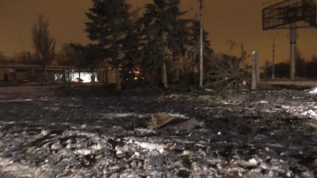 В сети появились снимки из Донецка с места мощного взрыва, прогремевшего ночью. На месте происшествия работают силовики и спасатели.