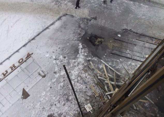 Жители Донецка опубликовали снимки-сравнение района «Мотеля» до взрыва вчера вечером, 2 февраля, и после него. Фотографии выложены в социальных сетях.