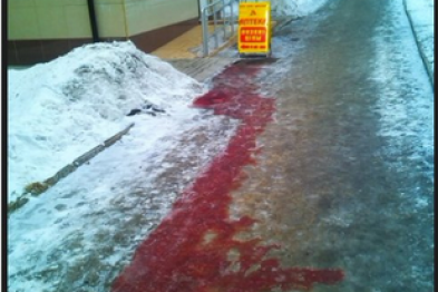 Сегодня, 11 февраля, тротуар перед аптекой на проспекте Панфилова в оккупированном Донецке оказался залит потоками крови.