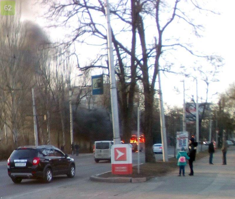 В пятницу, 10 марта, на улице Университетской, напротив здания Облстата в оккупированном Донецке загорелась и полностью сгорела маршрутка.