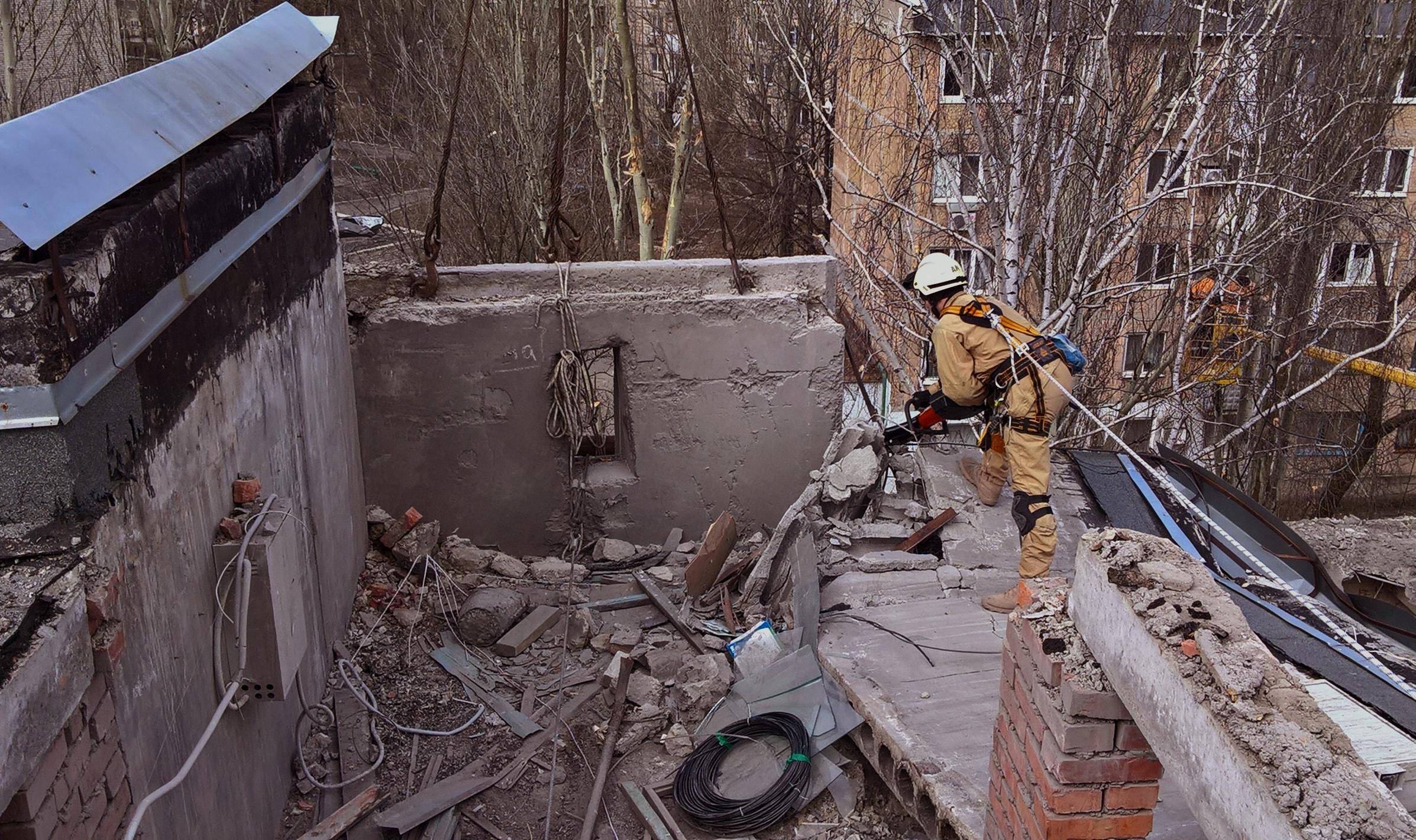 В частности, в результате артиллерийского обстрела были повреждены опорные блоки и плиты перекрытия кровли пятиэтажного дома по адресу: Менделеева, 3.