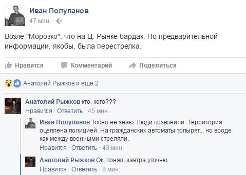 Местный журналист Иван Полупанов сообщил на своей странице в Фейсбуке, что по предварительной информации возле магазина "Морозко" произошла перестрелка, территория оцеплена полицией.