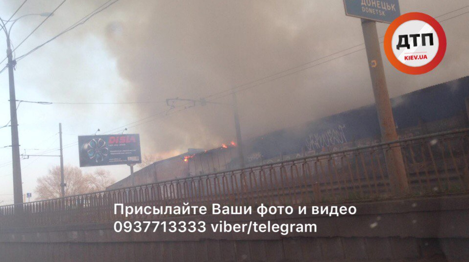 Сегодня, 1 апреля, на проспекте Степана Бандеры в Киеве загорелись складские помещения.