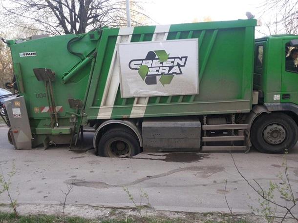 Сегодня, 4 апреля, около 8:00 на улице Липовая Аллея во Львове провалился мусоровоз. Об этом написали очевидцы в группе "Вартат-1".
