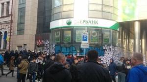 Участники блокады под Сбербанком в Харькове начали разбирать мостовую и бросать ее в полицейских. После того как Нацгвардия стала препятствовать доступу митингующих к зданию российского банка, произошла драка.