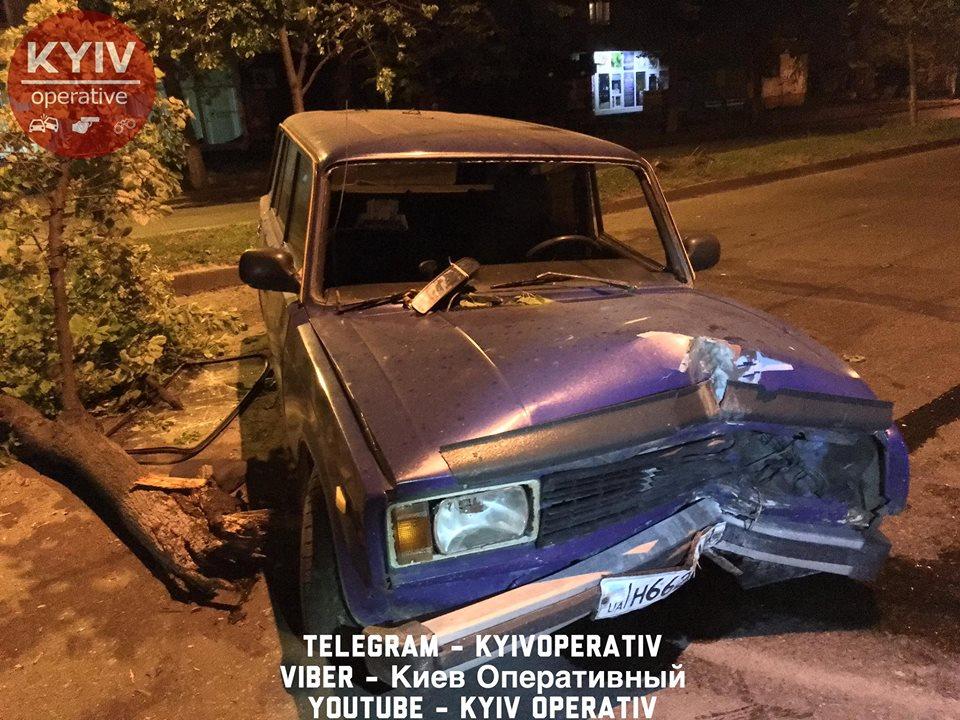Возле гостиницы Екатерина, на улице Вышгородской, 53, пьяный водитель, управляя автомобилем #ВАЗ, г.н #H6625IH, совершил "каскадерский трюк" - на серьёзной скорости въехал в дерево, после чего автомобиль отбросило на полосу встречного движения.
