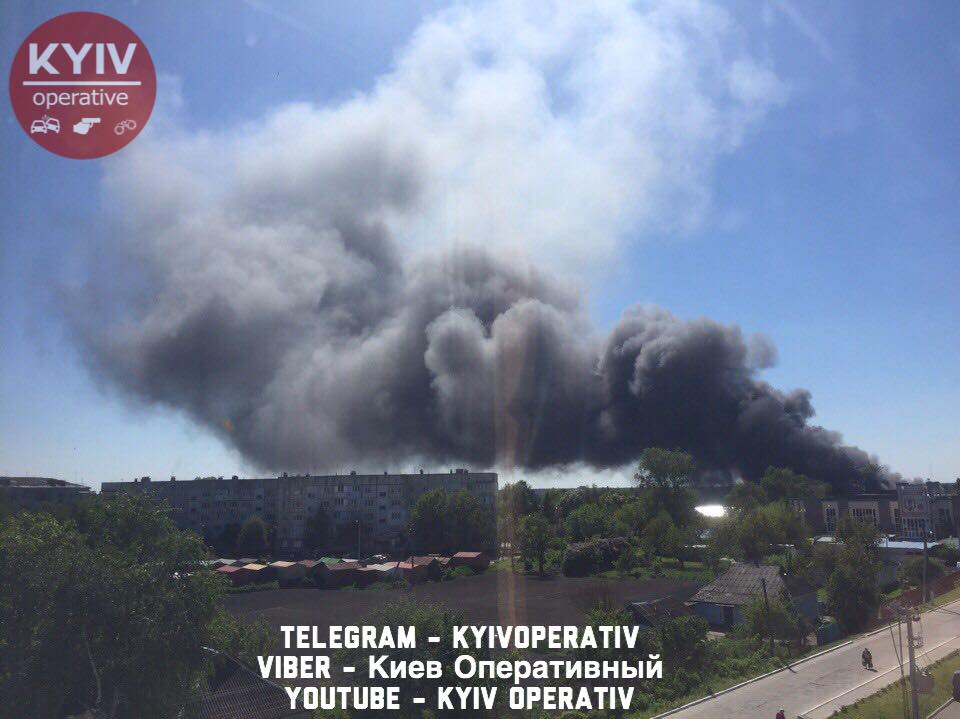 Сегодня днем в Киевской области загорелось предприятие. В небо поднялись огромные клубы дыма.