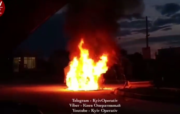 Охваченный пламенем автомобиль заснял на видео подписчик группы в Фейсбуке "Киев оперативный".